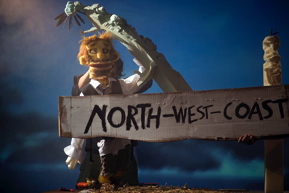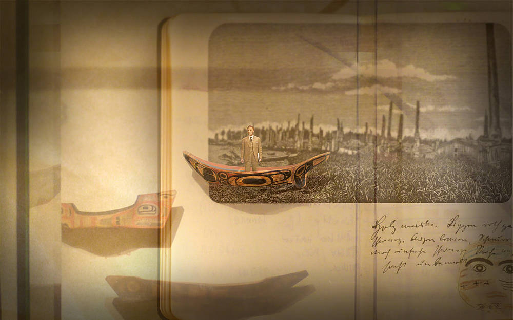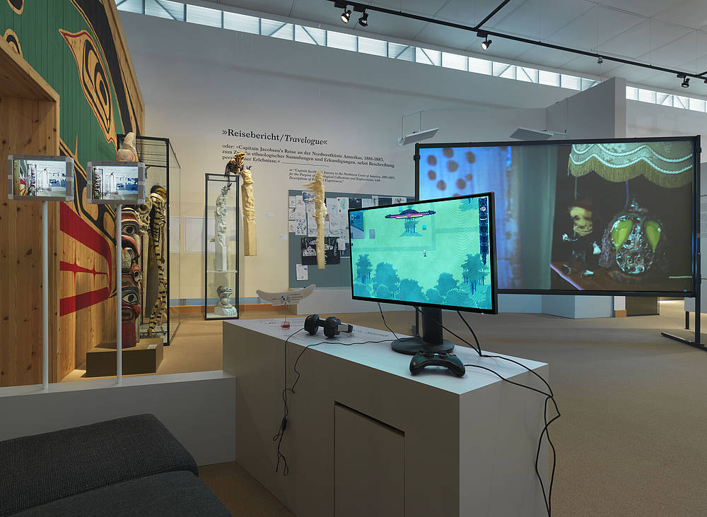 At the end of the 19th century, Johan Adrian Jacobsen was commissioned by the Berliner Museum für Völkerkunde to travel to the Pacific Northwest Coast and to Alaska, where he acquired numerous objects for the museum’s collection. He described his sojourn in an extensive travelogue. In their unique interpretation, the puppet theater Das Helmi and the artists’ group gold extra employ new narrative forms with which they address the origin of the collection, the role that Jacobsen played and the way in which the unknown is dealt with. In the computer adventure game developed by gold extra, visitors slip into the role of Jacobsen during his stay with the Haida in Canada. By means of a tablet, the objects of the collection turn into storytellers. Das Helmi produced a film with their foam puppets that sheds light on the figure of Jacobsen and translates the travelogue into the anarchical, improvising Helmi aesthetics. The project is directed by Viola König, Monika Zessnik and Andrea Rostásy.